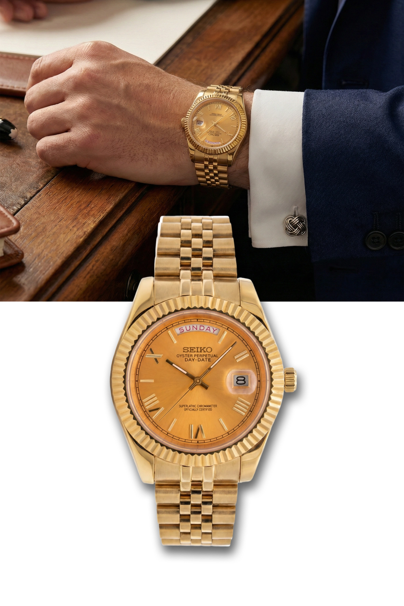 Skyrimwrist watches are powered by genuine Seiko movements sourced from trusted, verified suppliers. Our builds commonly feature reliable calibers such as NH34 (GMT), NH35, NH70, and VK63/VK64 chronograph, along with select Miyota automatic movements for specific designs.