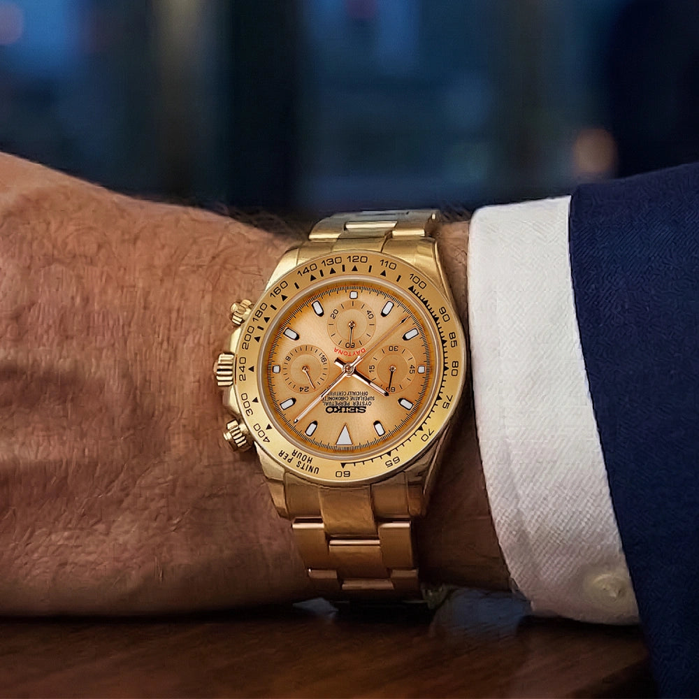 Skyrimwrist watches are powered by genuine Seiko movements sourced from trusted, verified suppliers. Our builds commonly feature reliable calibers such as NH34 (GMT), NH35, NH70, and VK63/VK64 chronograph, along with select Miyota automatic movements for specific designs.