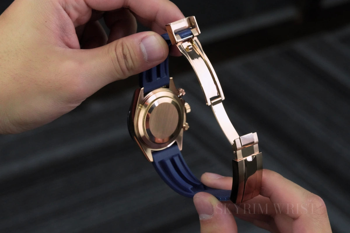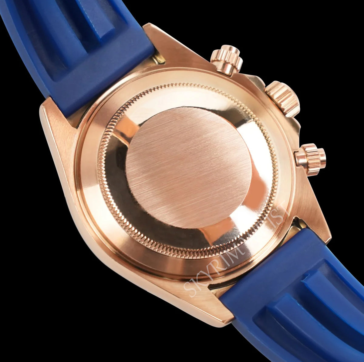 Deep blue dial with crisp subdials and bold presence that transitions seamlessly from boardroom to weekend drives.