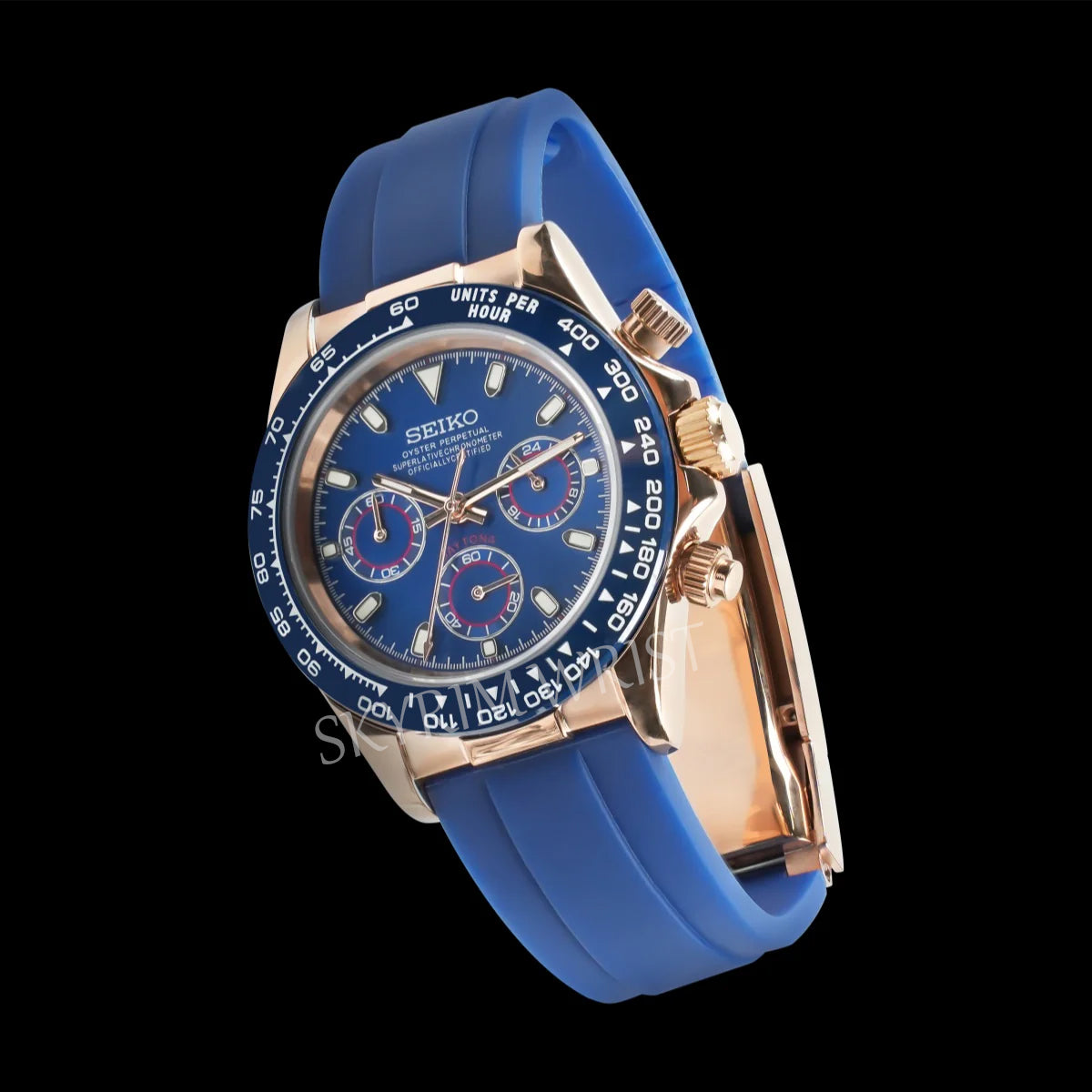 Inspired by the iconic Daytona. Uniquely designed and hand-assembled as a custom Seiko mod chronograph.
