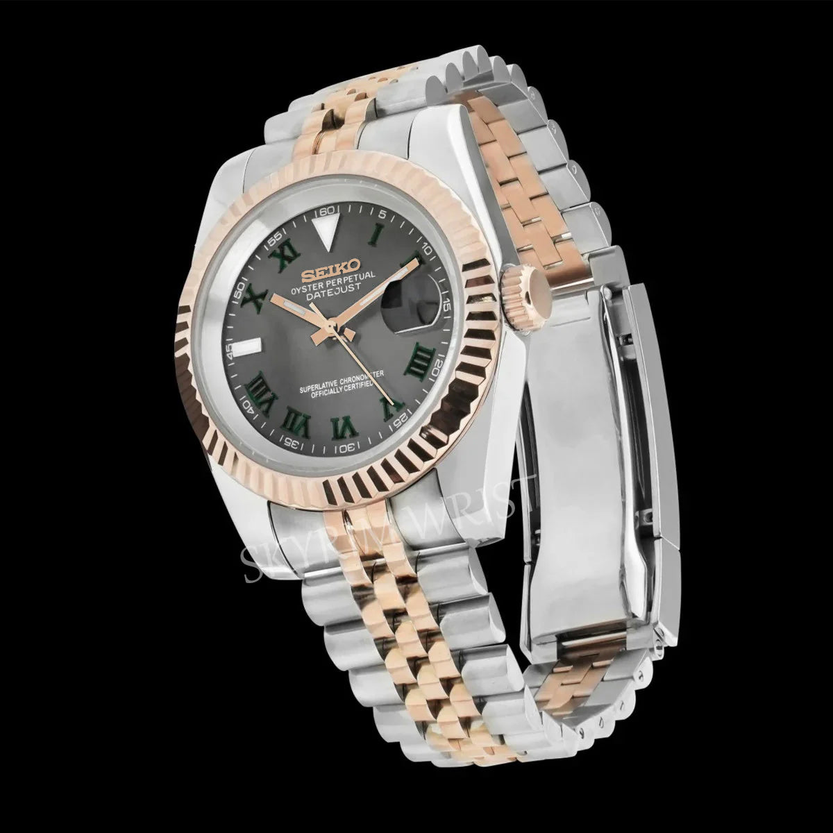 • Mod Datejust Wimbledon Two-Tone Rose Gold Gray - SKYRIM WRIST