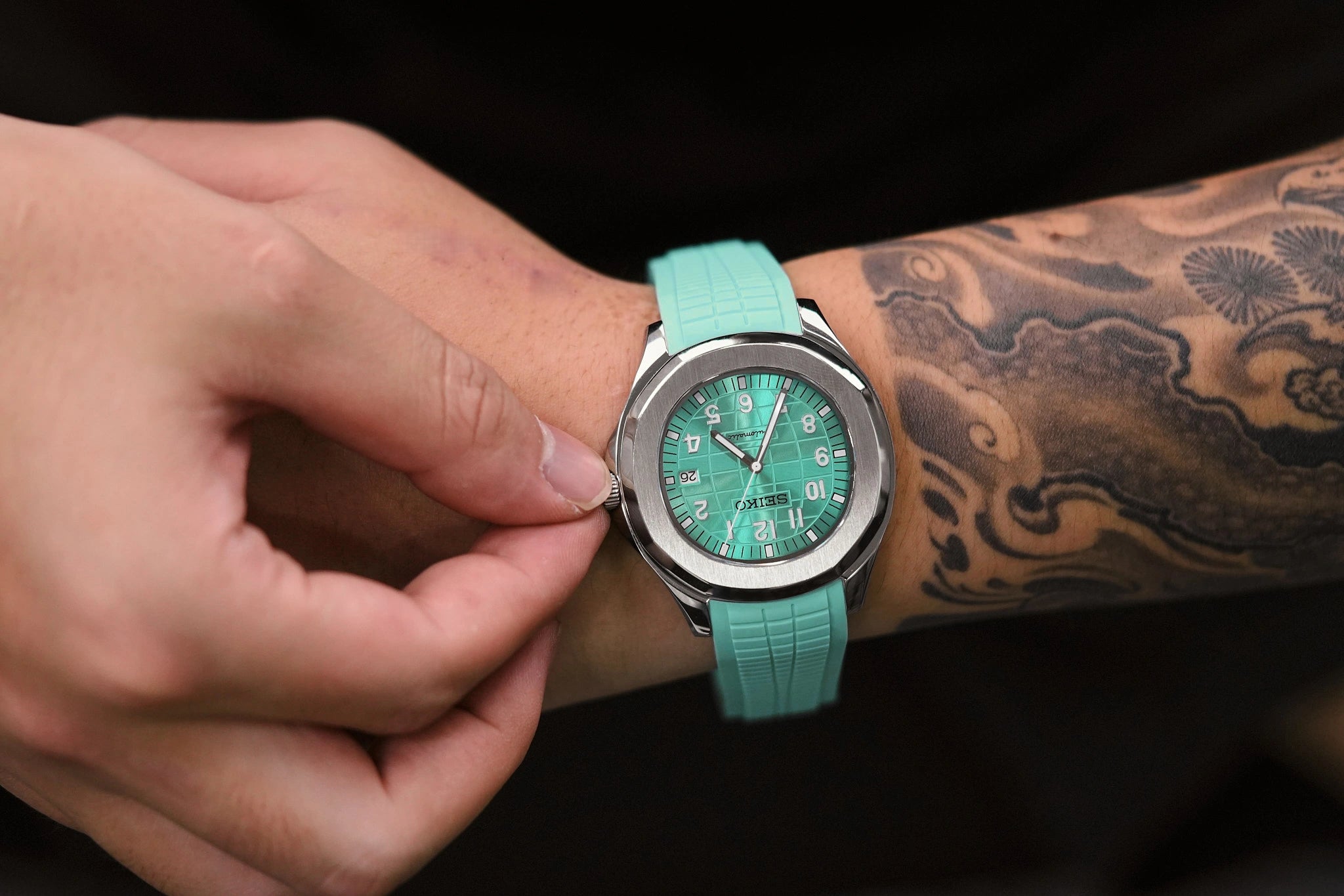 Reloj Aquanaut personalizado y renovado: bisel de 41 mm y pulsera de silicona