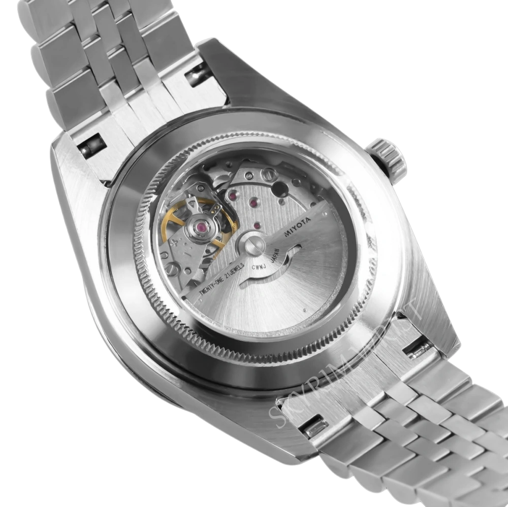 The Miyota 8285 delivers reliable automatic performance with full day-date display.