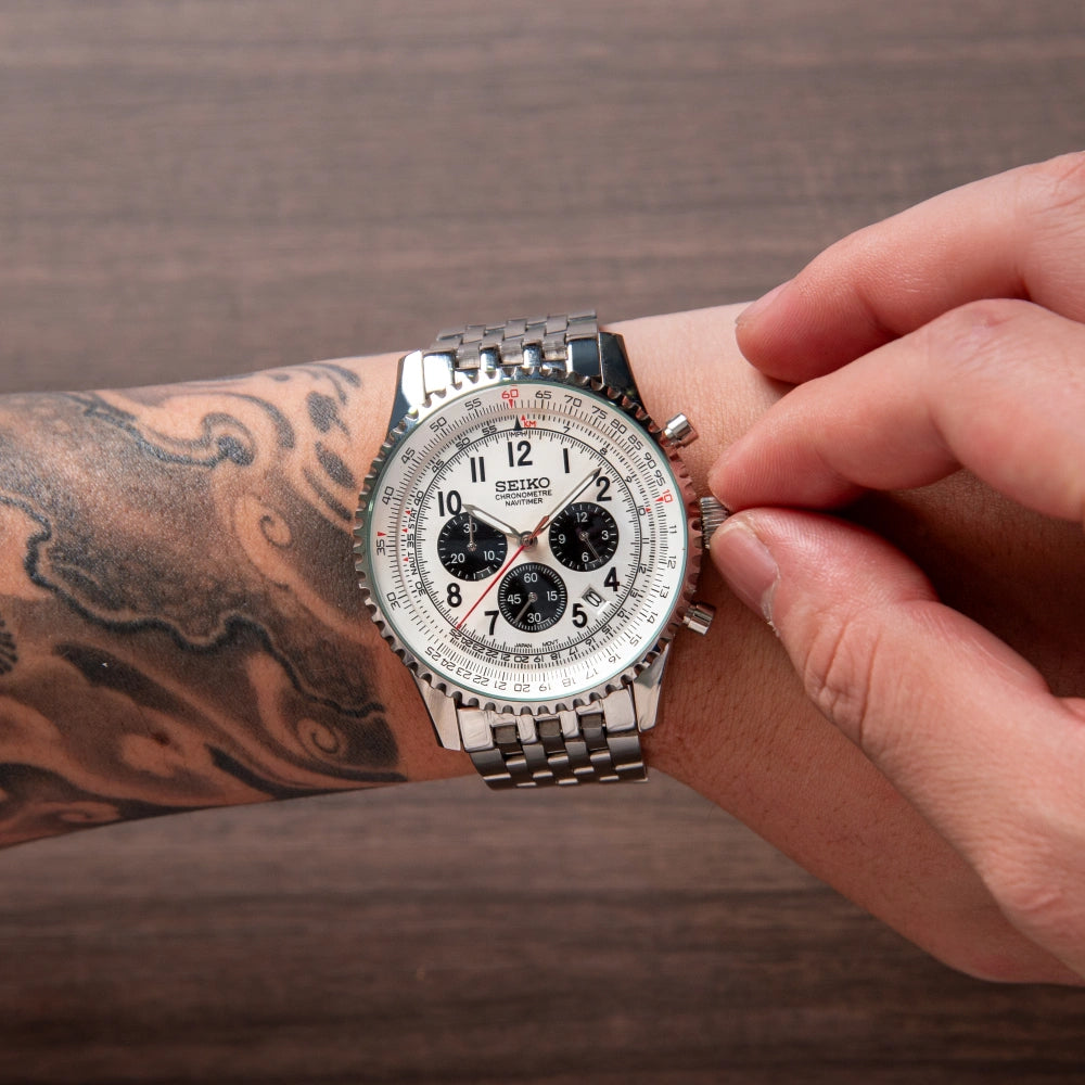 The Seiko VK63 delivers the crisp push-button feel of a mechanical chronograph with quartz accuracy.