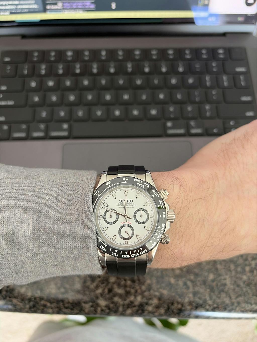 Really impressed with this Seiko mod Submariner style watch. The price was fair, it feels well made, and the finishing is better than I expected for the money. No, it’s not a Rolex, but I’m not trying to spend $10k, and this watch looks and wears great. Shipping was quick and the whole purchase was smooth. Highly recommend.